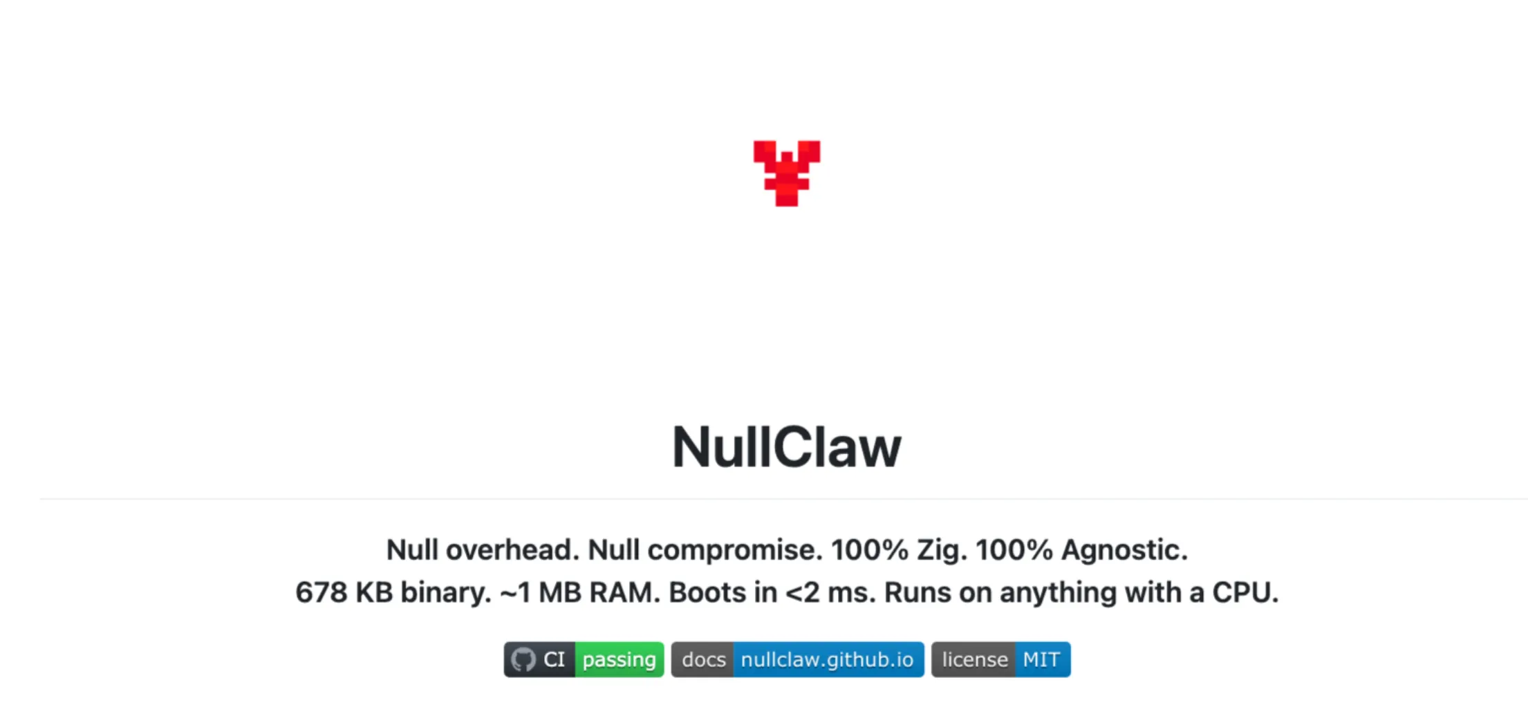 Written entirely in Zig, NullClaw compiles into a tiny static binary. We eliminated allocator overhead, garbage collection delays, and runtime dependencies. The result is pure, unadulterated performance that runs on anything with a CPU.